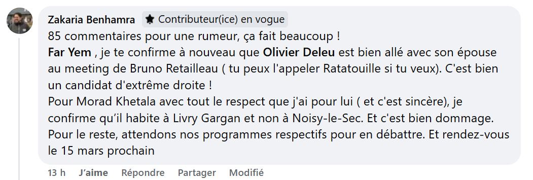 Le premier crime d’Olivier Deleu ? Avoir assisté à la réunion publique d’un ministre en exercice dans une ville voisine. Dans l’univers de M. Benhamra, écouter devient adhérer, observer devient comploter, et la curiosité intellectuelle mérite l’excommunication politique. L’amalgame entre Les Républicains et l’extrême droite est si commode quand les arguments font défaut.