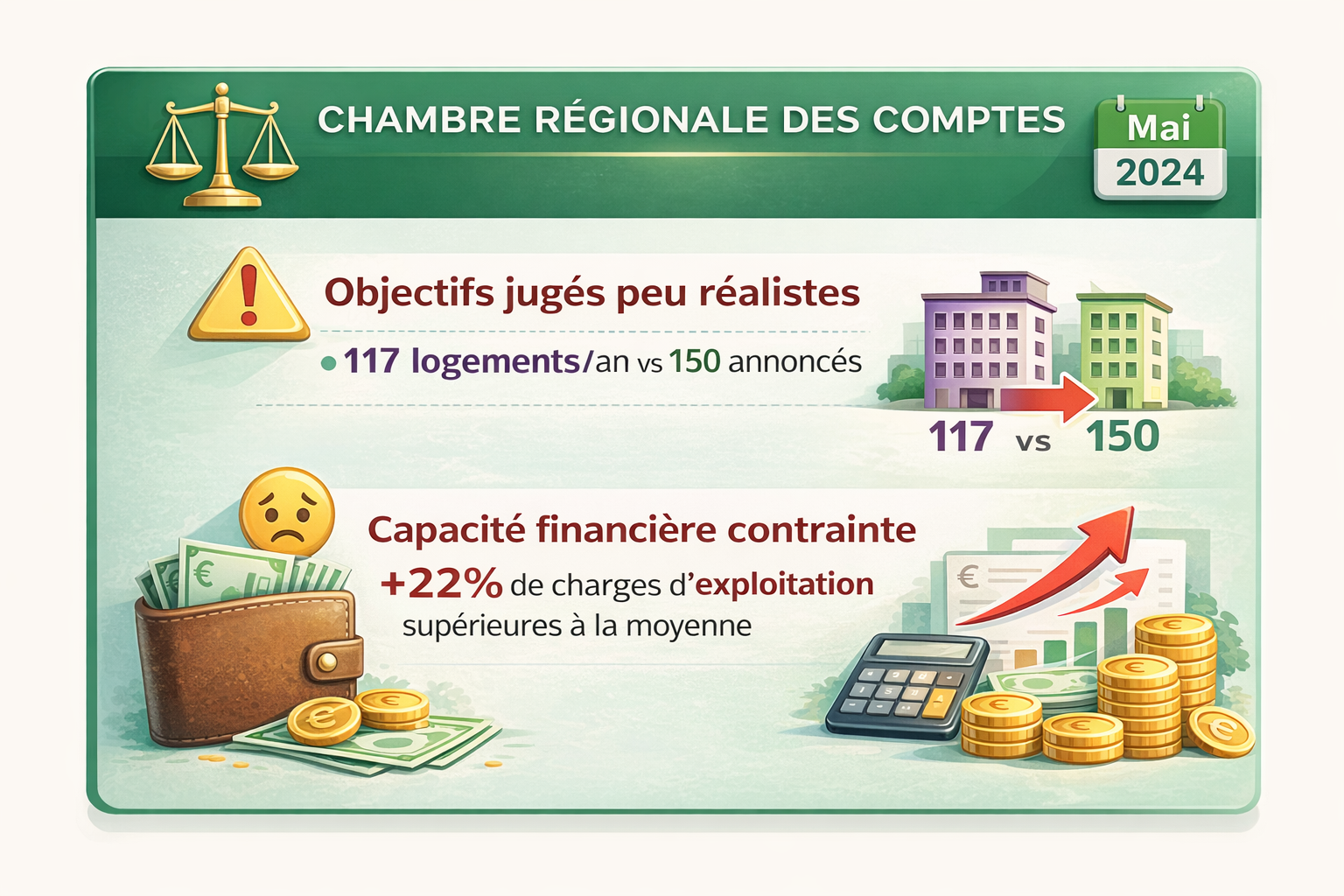 En 25 ans, malgré des aides publiques de 7 millions d’euros (protocole 2020-2022), l’OPH de Bobigny n’a jamais réussi à assainir sa situation. La CRC constate un « non-respect des engagements depuis 2018 » et qualifie l’effort de redressement d’« extrême fragilité ».