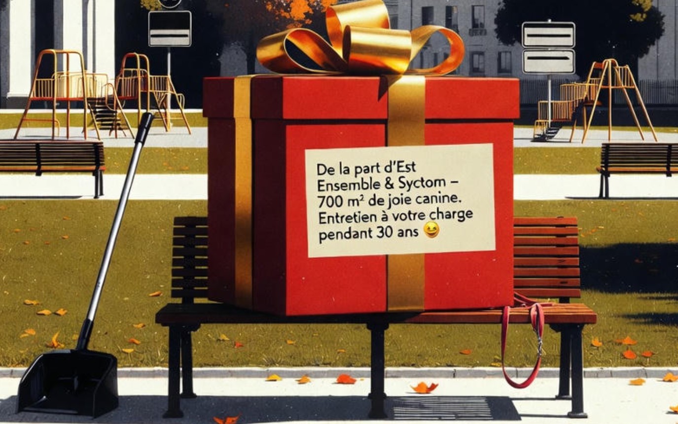 L’avant-contrat est formel : le caniparc de 700 m² sera « aménagé et financé par Est Ensemble ». Générosité apparente. Cadeau de Noël avant l’heure.
